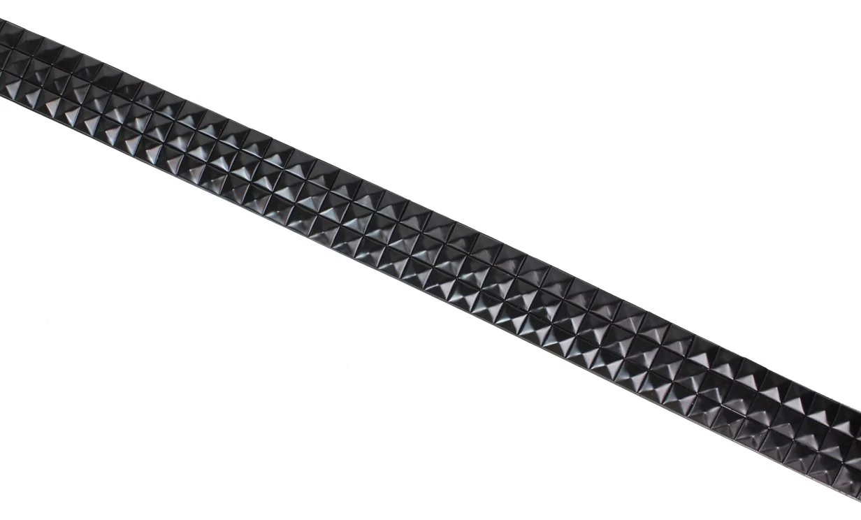 This studded belt has metal matt black studs for a deep dark subtle finish